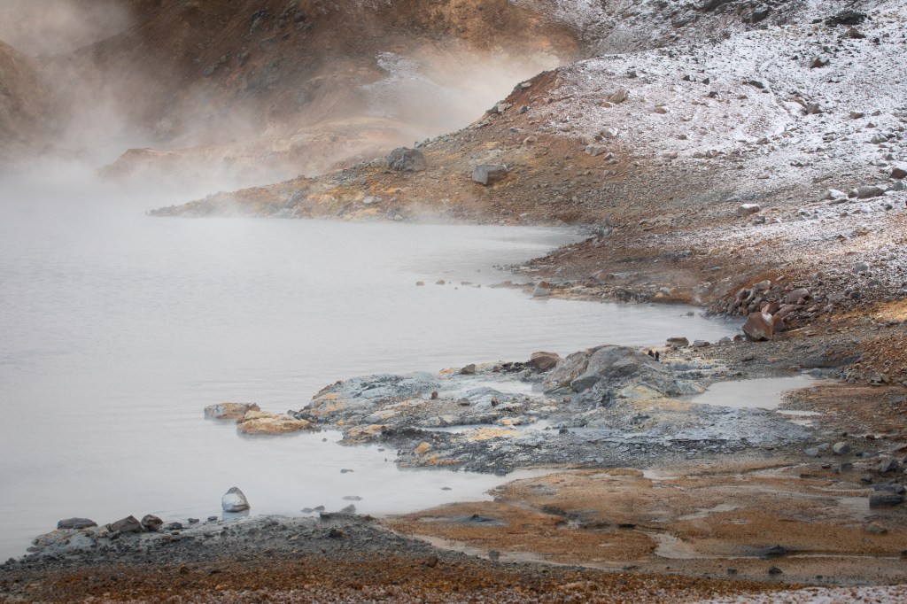 Það er eitthvað svo heillandi að sjá andstæðurnar í snjónum og þessu heita vanti sem þarna streymir upp úr jörðinni.