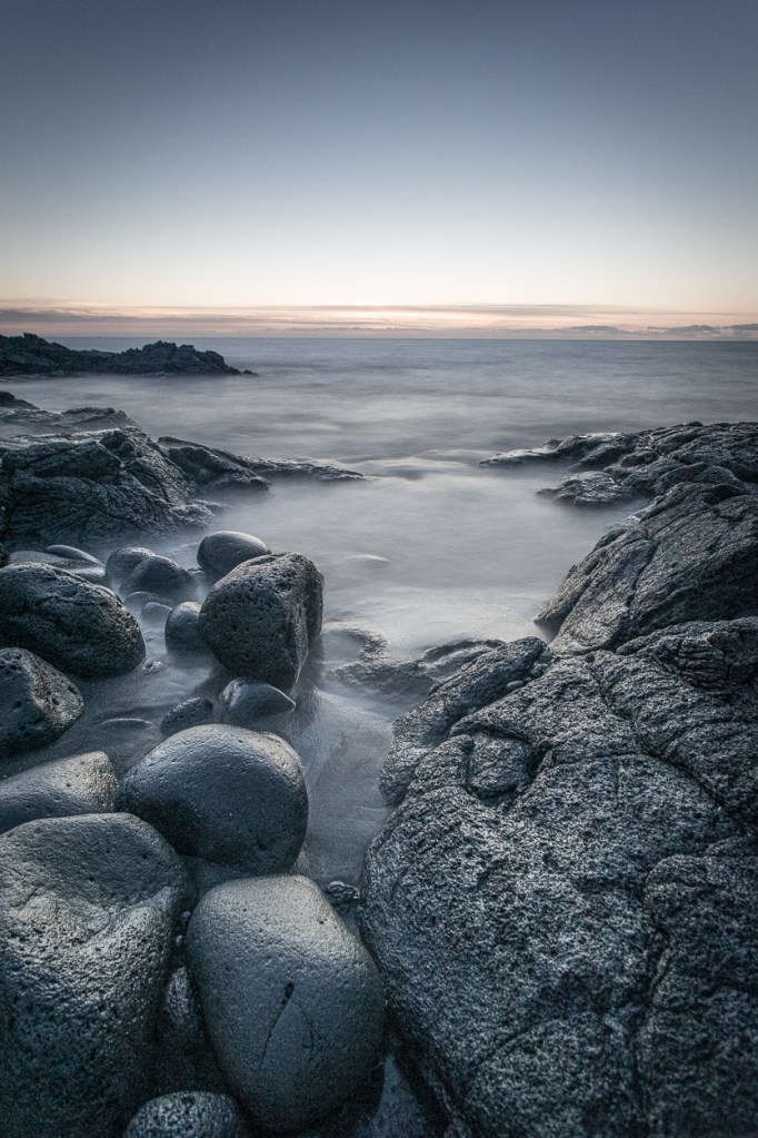Það er líka gaman að mynda fjöruna á Hvaleyri við Hafnarfjörð og þangað fór ég um daginn þegar eldgosið var lokað. Birtan var mýkri og litirnir ekki eins djúpir, auk þess sem fjörugrjótið er grófara en í Gróttu.